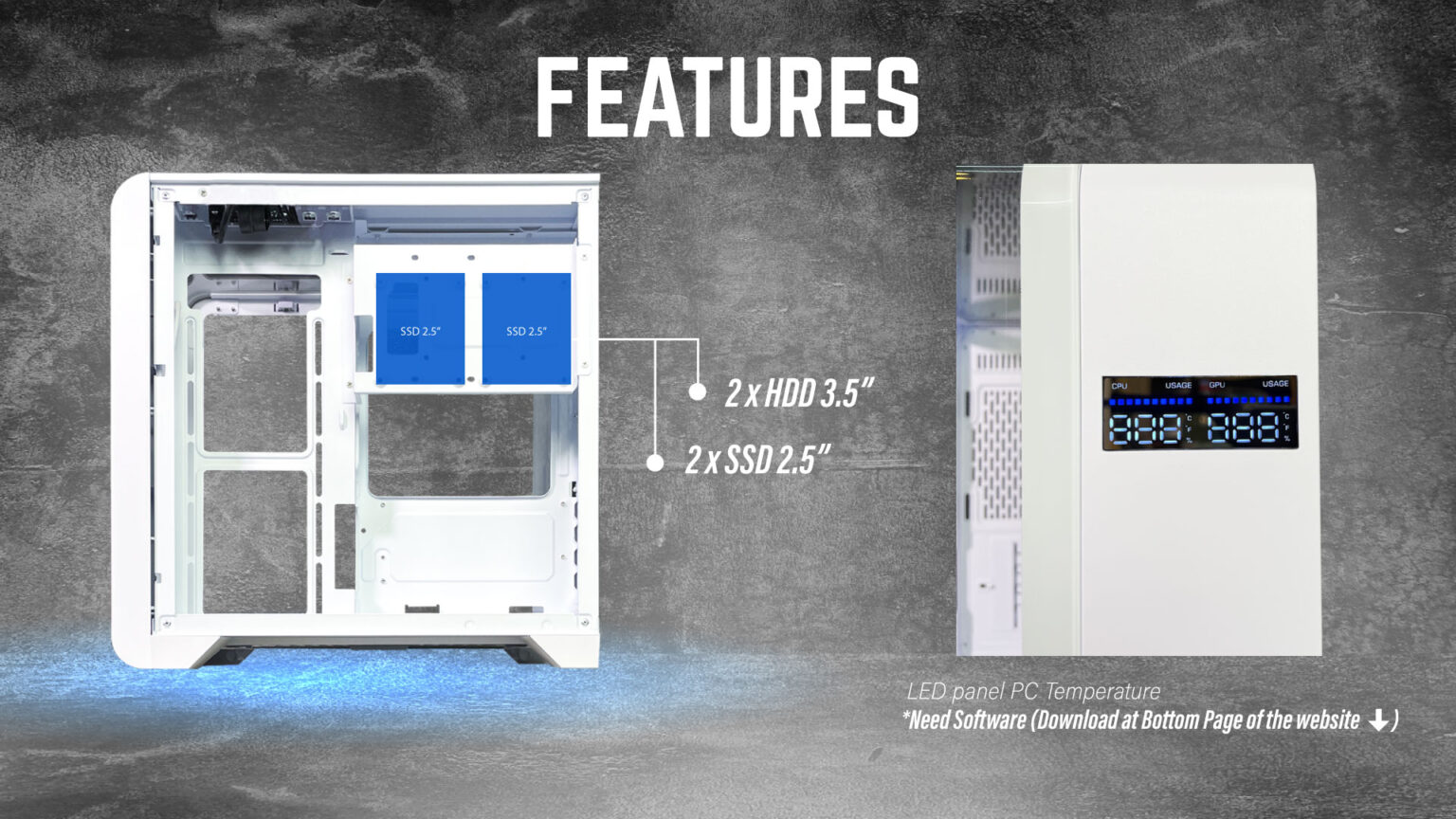 • Case Drive Bays = (X1) 3.5IN HDD, (X2) 2.5IN SSD