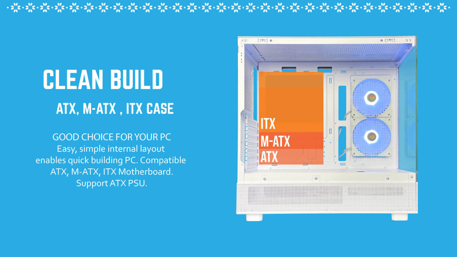 - Compatibility : ATX, M-ATX, ITX