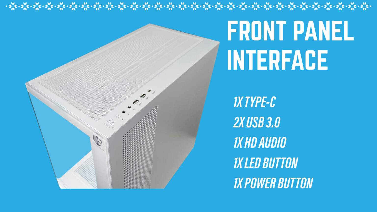 - I/O Ports : 1X Power, 1X LED, 2X USB 3.0, 1X Type-C, Audio Jack 3.5MM