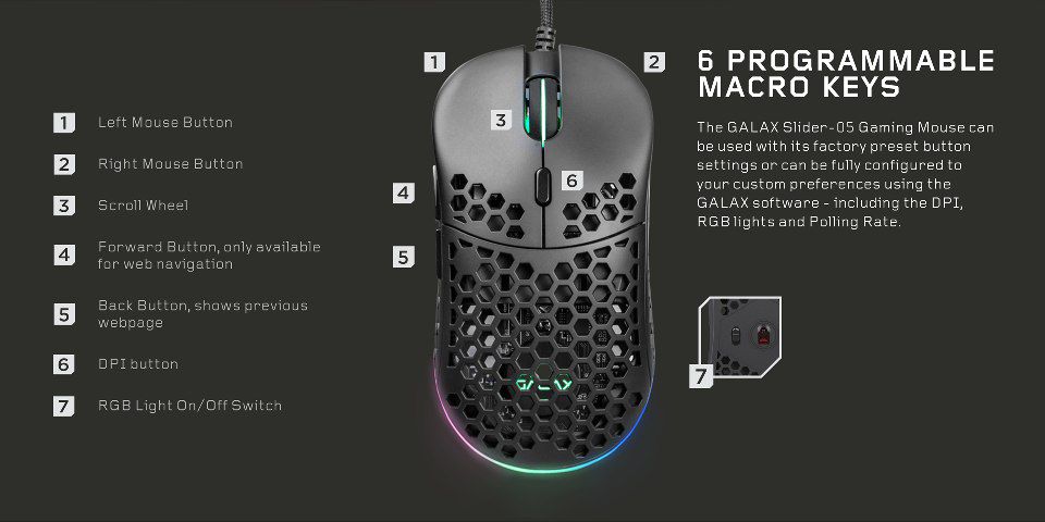 - Buttons = 6 + 1 switch