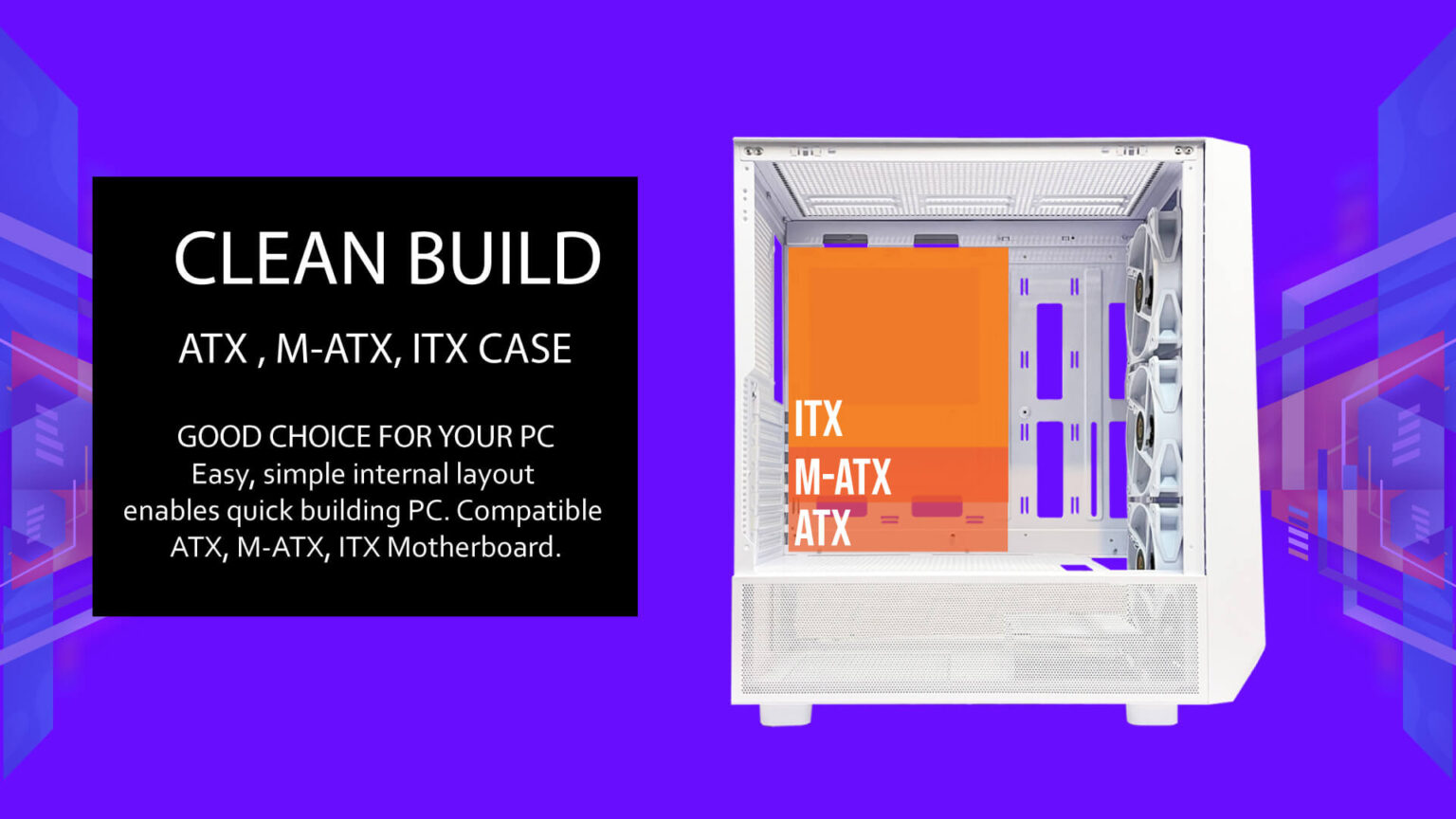 • Compability : ATX, M-ATX, ITX