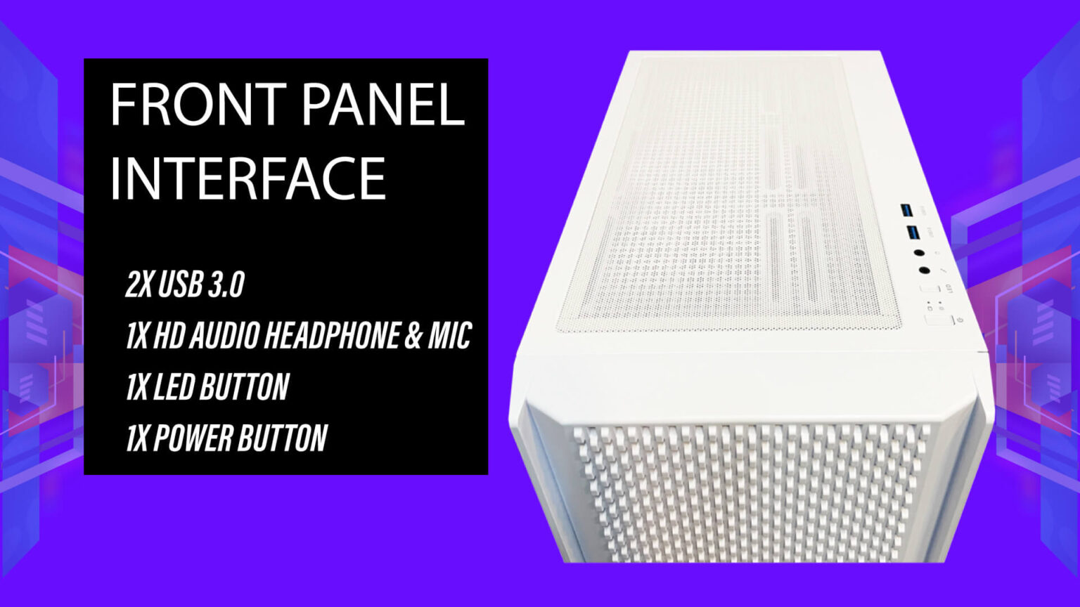 • I/O Ports : 1X POWER, 1X LED, 2X USB 3.0, AUDIO JACK 3.5MM